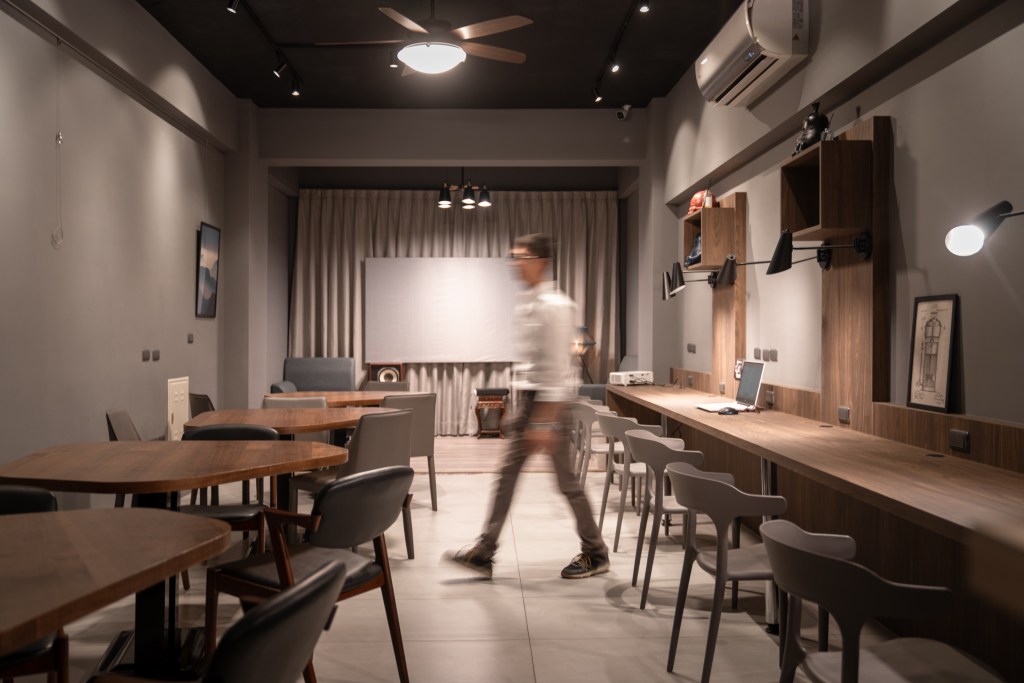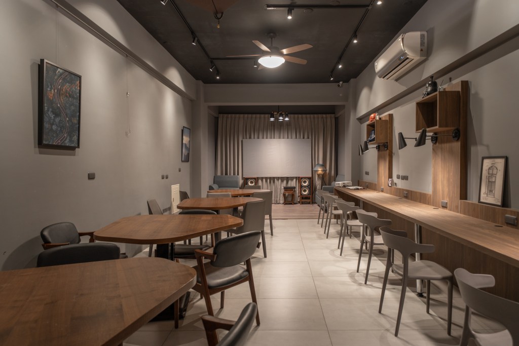 順風咖啡二樓為 Coworking Space適合專題討論、講座、記者會…各式活動完整設備:投影機、麥克風、音響、印表機、顯示器舒適使用約20人,搭配桌子使用,書寫方便筆記人數多約可以40人空間,適合中型座談活動。